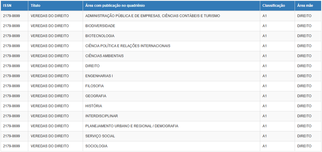 was evaluated by Qualis-Capes in the A1 tier in the following areas: